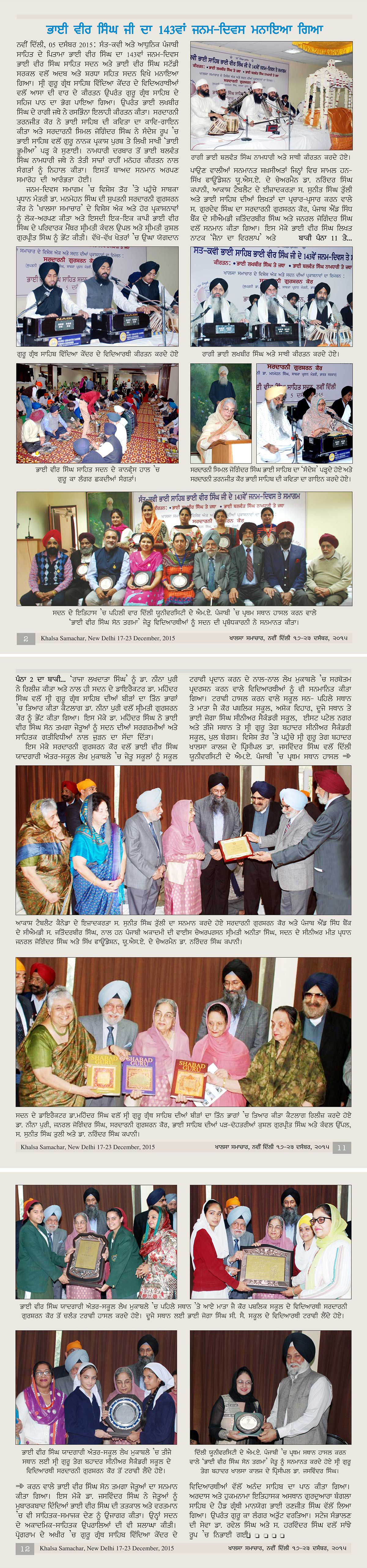143rd Birthday Celebration of Bhai Vir Singh, Dec. 5, 2015 >>Report