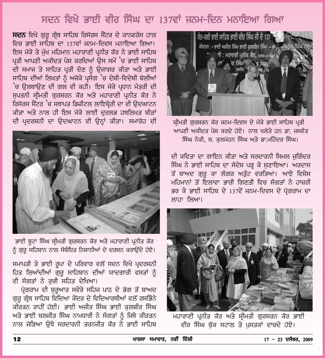 137th Birthday Celebration of Bhai Vir Singh, Dec. 5, 2009 >>Report