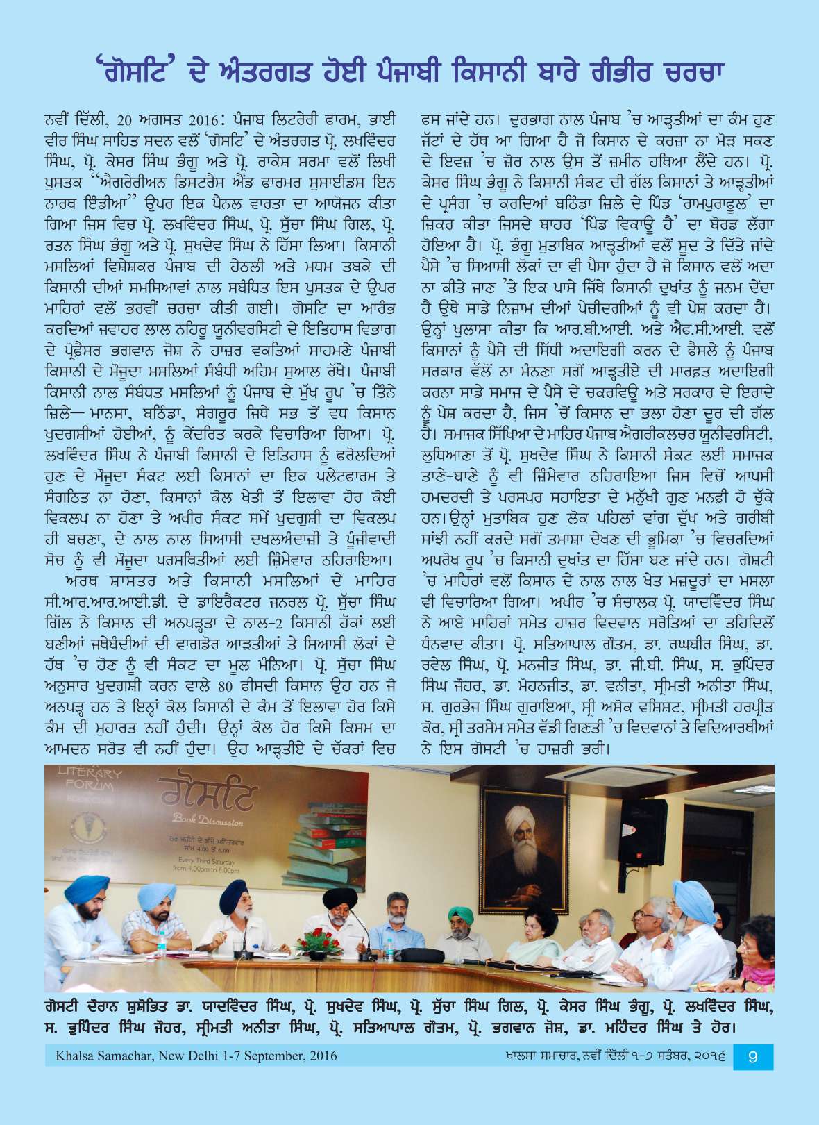 August 20, 2016, Book Discussion on Lakhwinder Singh, Kesar Singh & Rakesh Sharma’s “Agrarian Distress and Farmer Suicides in North India” at Punjab Literary Forum, Bhai Vir Singh Sahitya Sadan, New Delhi. Report>>