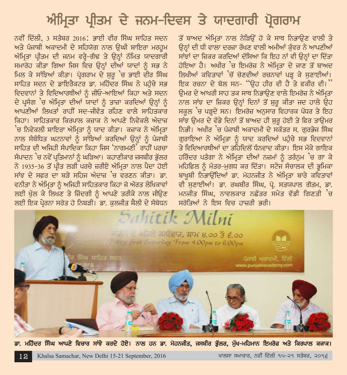 Bhai Vir Singh Sahitya Sadan & Punjabi Academy, Delhi cordially invite you to Sahitik Milni Every first Saturday at Bhai Vir Singh Sahitya Sadan, Gole Market, New Delhi-110001, From 4.00 P.M. to 6.00 P.M. (The series has been discontinued).
