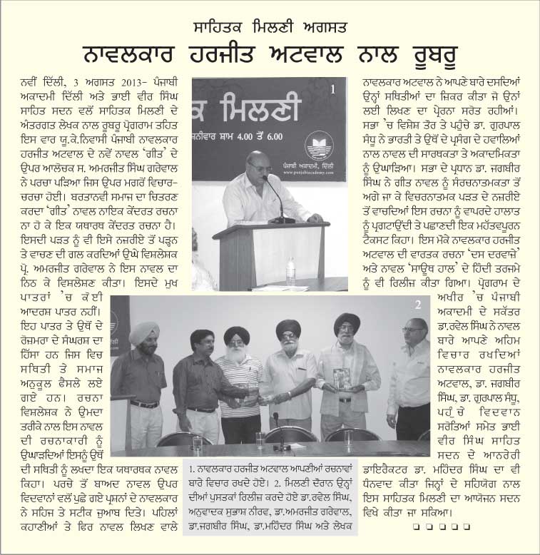August 3, 2013, Meet the Author with Harjit Atwal (U.K.). presided over by Dr. Jagbir Singh. Report>>